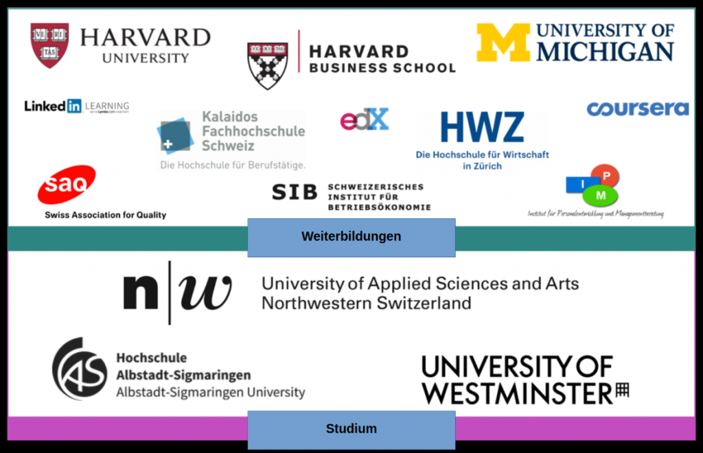 Übersicht zu beispielhaften Organisationen, an und mit denen ich meine Aus- und Weiterbildung absolviert habe: